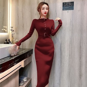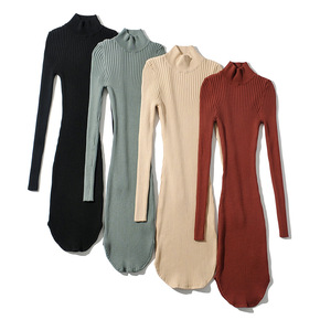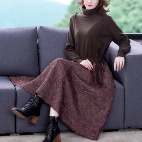 针织连衣裙女装2021秋冬季新款气质半高领收腰显瘦...