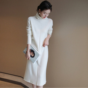 法式配大衣长裙白色针织打底高级感御姐高领毛衣连衣裙...