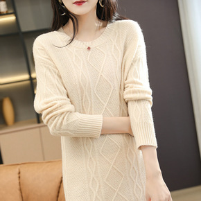 亚马逊跨境2022秋冬新款欧美麻花中长款针织衫半高...