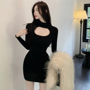 高领毛衣打底裙内搭紧身露肩高级感性感修身针织包臀连...