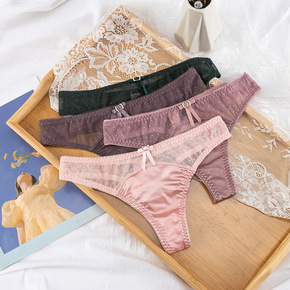丁字裤女美式ins火辣比基尼低腰蕾丝性感无痕薄款诱...