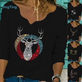 2021跨境外贸秋冬新速卖通长袖上衣女 圣诞麋鹿...