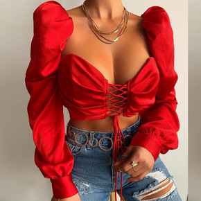 新款显瘦修身t恤ins潮衫女士学生长袖蕾丝秋冬季翻...