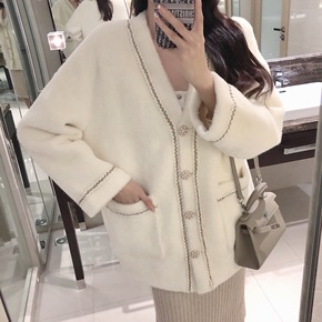 黑色外穿2021年新款秋冬小香风宽松毛衣开衫外套女...