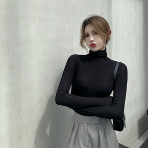 堆堆领打底衫女长袖内搭紧身上衣秋冬新款纯色简约基础...
