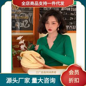赫本法式复古秋冬V领绑带收腰短款针织衫高腰显瘦打底...