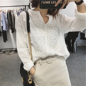 莉之绮日韩休闲春秋女装批发V领刺绣花朵宽松大码长袖...