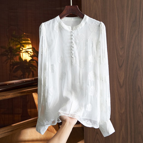 雪纺提花短袖衬衫女气质薄款小众设计感2022夏季新...