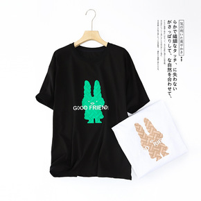 男女同款小兔子字母印花T恤女短袖2022夏季新款宽...