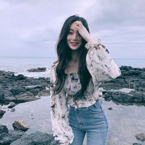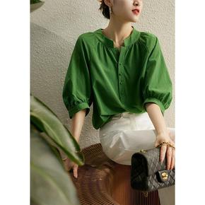 2022春装新品 韩版收腰显瘦宽松灯笼袖衬衫女百褶...