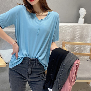 2022年大码女装打底衫夏季新款中长款宽松短袖t恤...