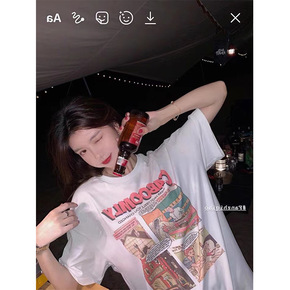2022春夏涂鸦t恤女印花白色短袖夏季装新款宽松纯...