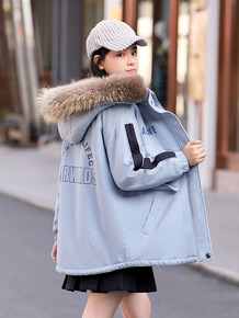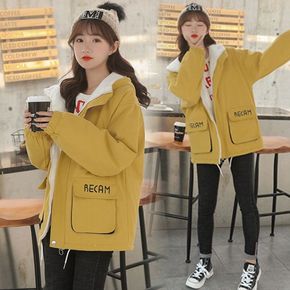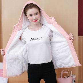 加绒加厚外套初中学生少女大童秋冬装新款韩版高中生百...