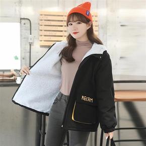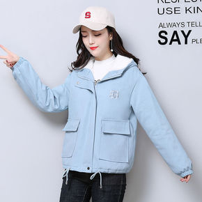 2020秋冬季新款短款外套女加绒加厚保暖连帽棉衣高...