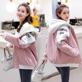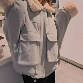 羊羔毛外套女加绒工装外套女秋冬装2021年新款初中...