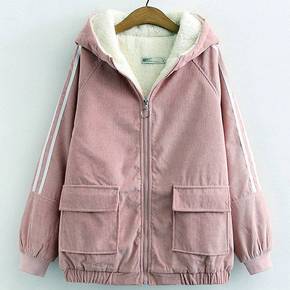 初中高中学生加厚外套女冬装青少年棉衣韩版休闲灯芯绒...