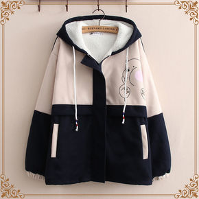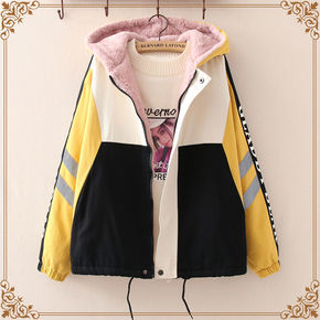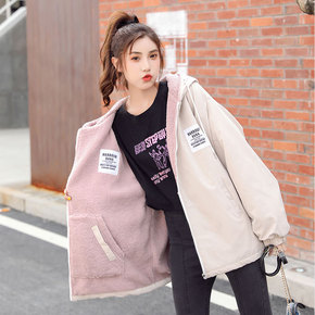 高中生加绒外套女孩冬装2021新款初中学生羊羔绒棉...