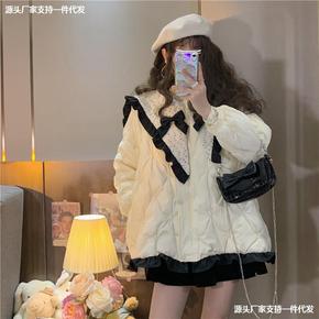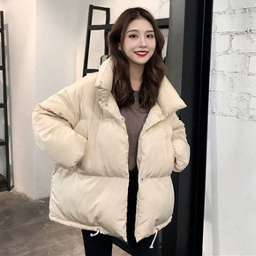 秋冬2021新款韩版宽松百搭休闲翻领棉服女学生纯色...