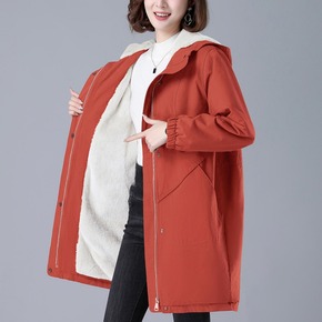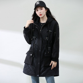 中长款派克服女冬季2021年新款休闲连帽工装棉衣棉...