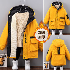 男童冬季加绒棉服儿童加厚外套冬装秋连帽中长款棉衣2...