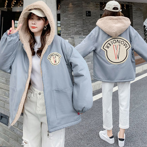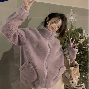 炸街香芋紫羊羔毛外套女冬季夹棉休闲高领宽松百搭保暖...