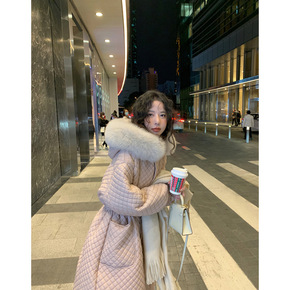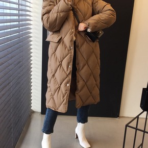 现货!2021冬季日韩乐天新款中长加厚宽松羽绒棉服...