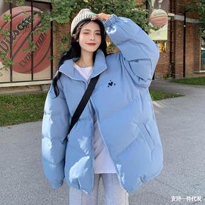 蓝色棉服女装秋冬季2021新款韩版学生面包服设计感...