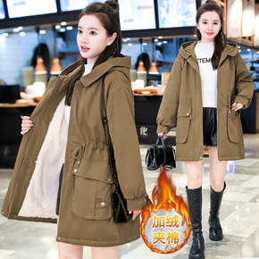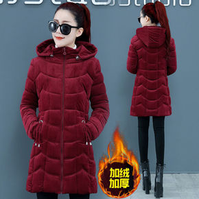 加绒棉服女中长款2021年冬季新款女装韩版显瘦休闲...