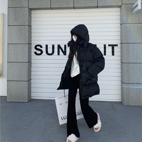 厂家直销中长款加绒加厚连帽面包服外套秋冬拉链长袖黑...
