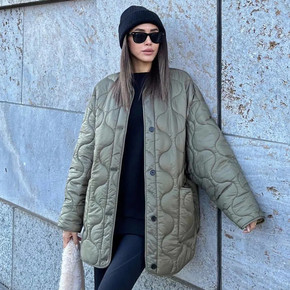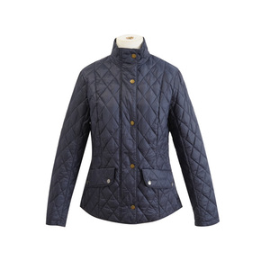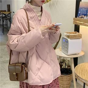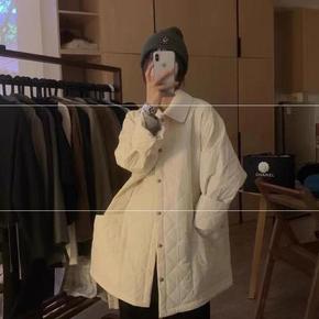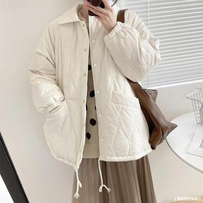 热卖韩版女装2021新款秋冬保暖翻领菱格系扣外套女...