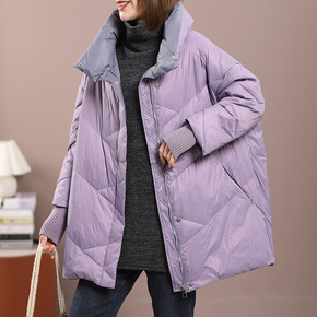 2022冬季新款双盖大口袋宽松大码羽绒服外套女70...