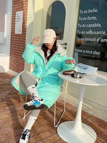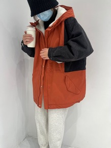 莉之绮冬季加厚保暖拼接毛毛慵懒风宽松中长款面包棉服...