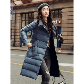 秋冬新款磨砂轻薄女棉衣过膝时尚棉袄立领中长款修身羽...