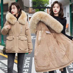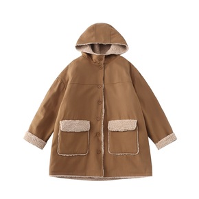 日系复古连帽宽松中长款厚实保暖羊羔绒棉衣棉服女...