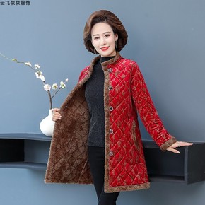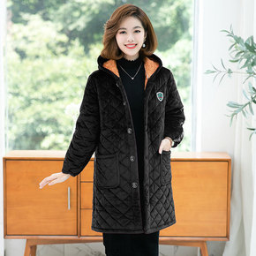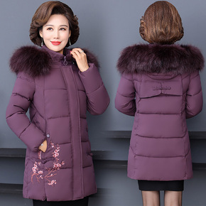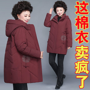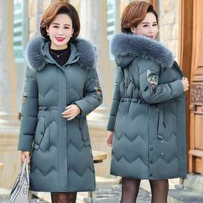 妈妈冬装棉衣中长款保暖外套宽松中老年女装大码棉袄加...
