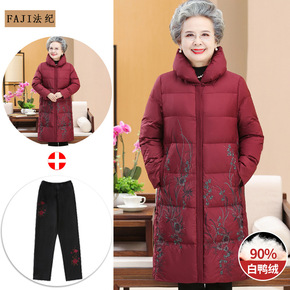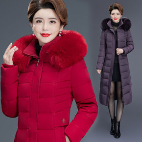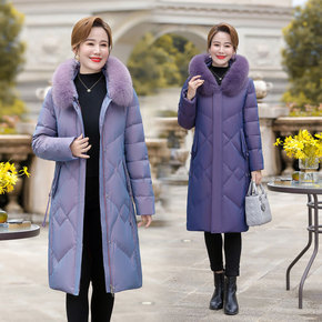 洋气妈妈冬装羽绒服中长款过膝阔太太白鸭绒外套奶奶冬...