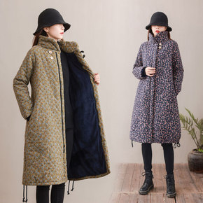 文艺复古夹棉加厚连帽棉服女中长款冬季宽松大码休闲保...