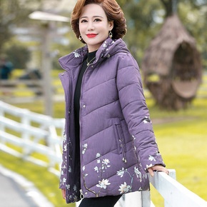 中年妈妈秋冬装羽绒棉服外套2021新款棉袄中老年印...