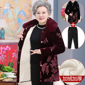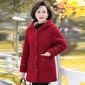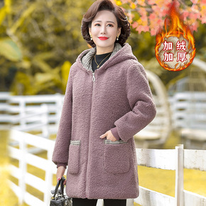 中年妈妈冬装外套加绒加厚羊羔毛上衣50岁中老年女装...