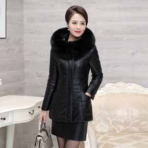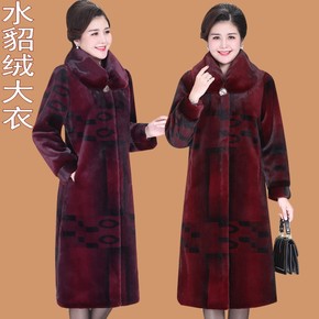 代发中老年女装新款皮棉衣妈妈装冬季中长款大毛领皮衣...