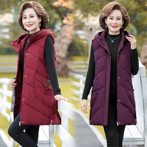 妈妈新款秋冬羽绒棉马夹中长款加厚坎肩背心中老年人女...