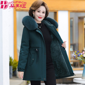 妈妈冬装派克服加绒外套时尚棉袄2021新款50岁中...