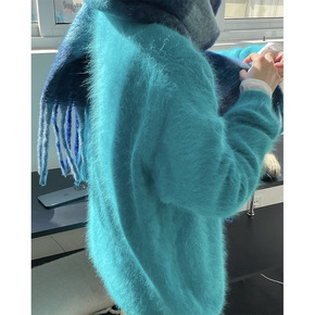 冬季新款韩版朦胧长毛兔毛圆领毛衣宽松显瘦温暖慵懒氛...