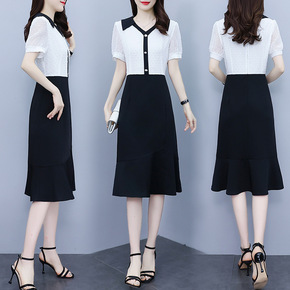 雪纺连衣裙女夏季新款2022大码女装胖mm拼接V领...
