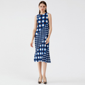 美术馆法式格纹蕾丝蝴蝶领收腰连衣裙小个子微胖设计感...