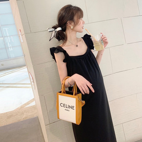 实拍现货俏皮公主方领韩范设计感小飞袖减龄孕妇连衣裙...