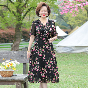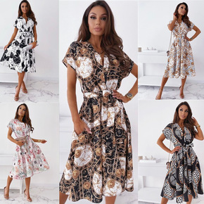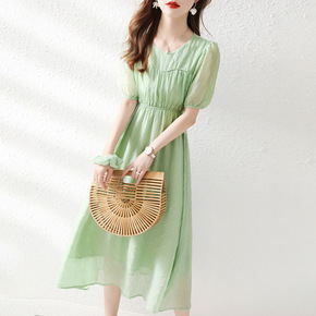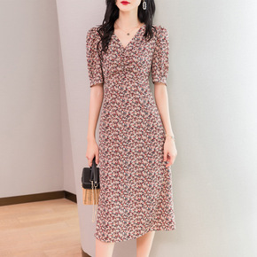 源头厂家 2022夏季新款连衣裙V领雪纺印花长裙优...