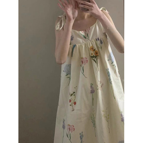 YUMO法式站在奶油阳光下「多种穿法的蝴蝶结连衣裙...