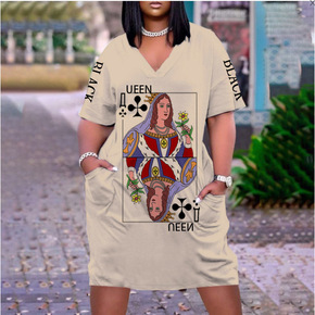 2022欧美新款扑克 queen 女士沙滩裙夏季宽...