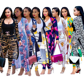 X9189跨境专供 长袖印花外套披风紧身裤两件套亚...